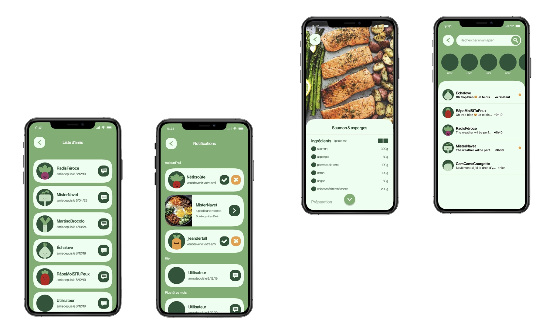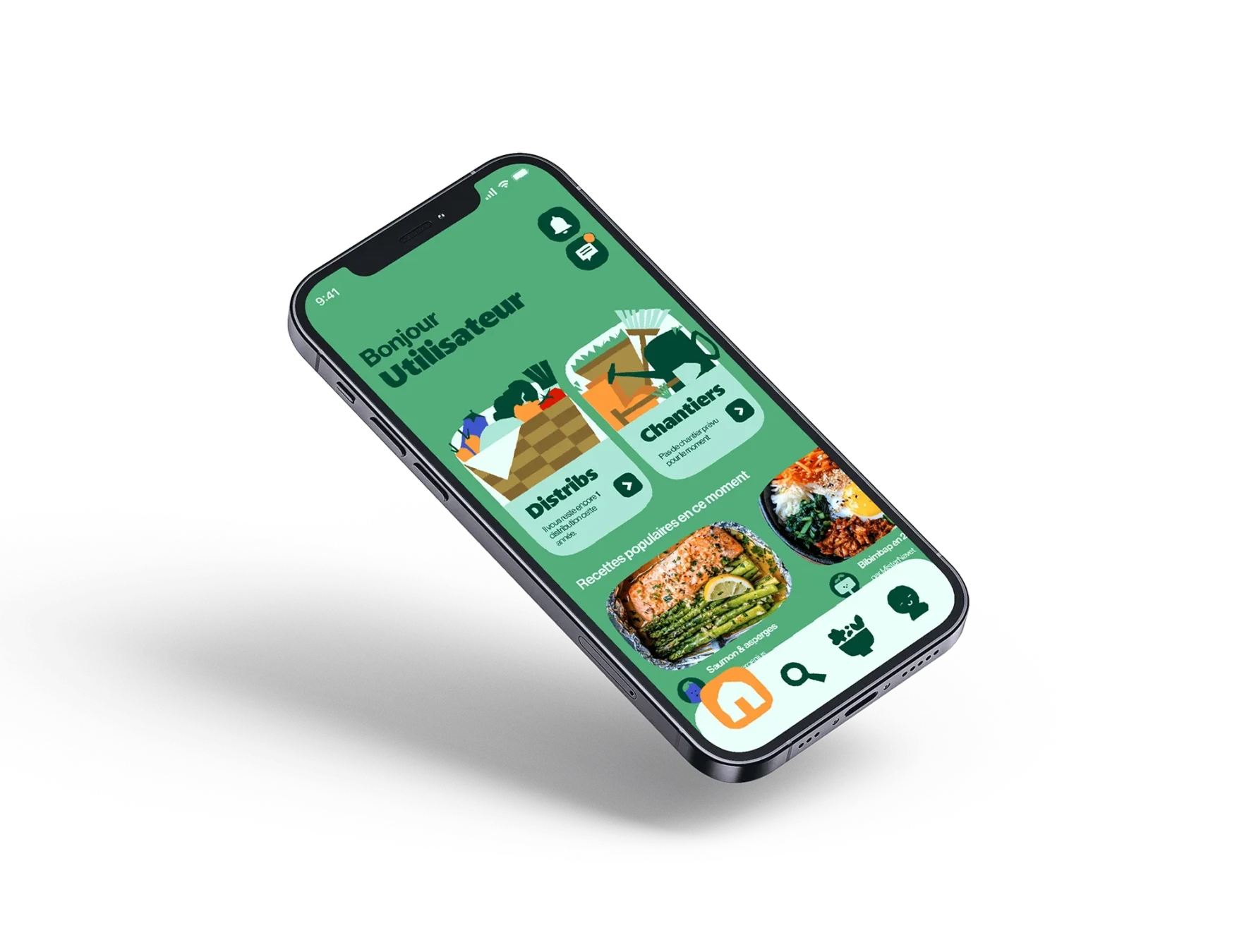 Interface pleine de vitamine pour l’AMAP Lomme de Terre à Pérenchies qui cherche à moderniser son appli mobile. Création d’un prototype d’application, et de tous ses éléments visuels.